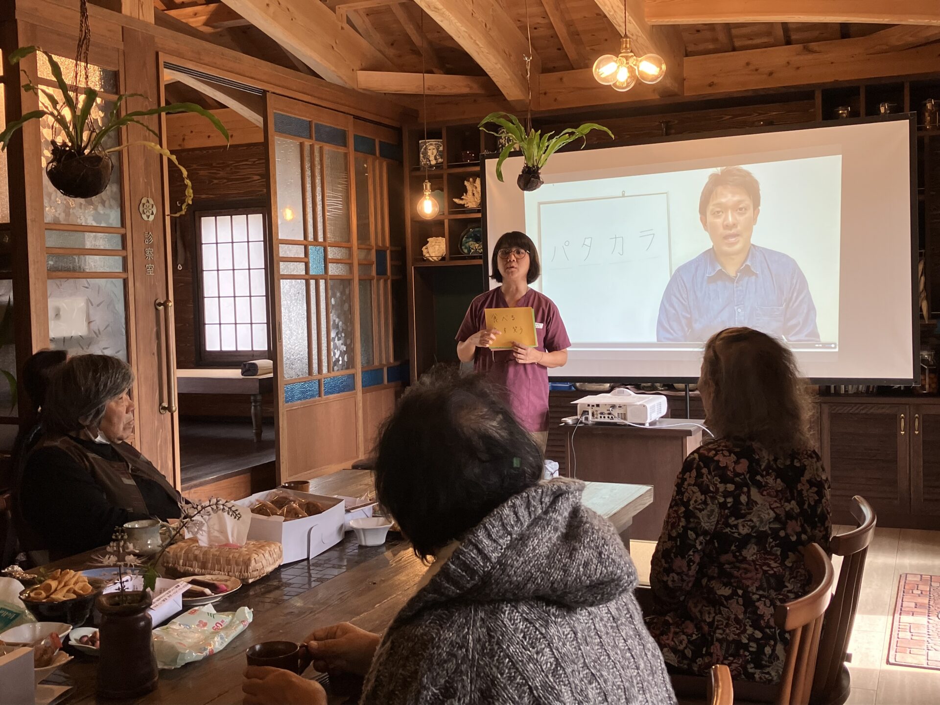 今回は歯科衛生士の方を講師にお迎えし、「あいうべ体操」と「パタカラ体操」を教えていただきました。